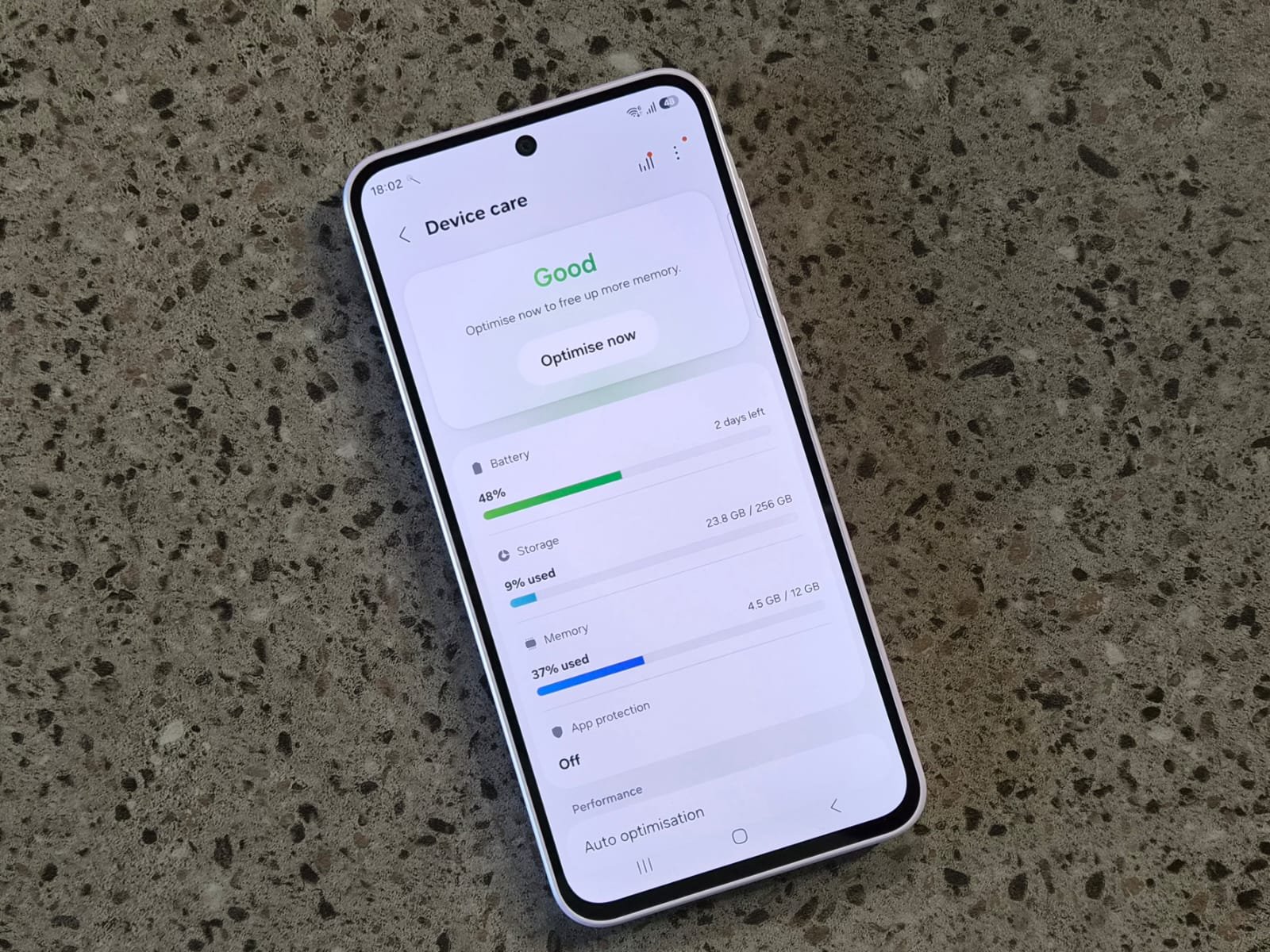 Under the hood, the Galaxy A37 packs Samsung’s in-house Exynos 1480 processor, which delivers balanced performance tailored for mid-range users. Gaming is surprisingly decent with no visible lag or frame drops in demanding titles. I played Battlegrounds Mobile India (BGMI) at HD+ 60 fps settings for 2-hour sessions and experienced smooth gameplay, even during intense firefights and vehicle chases. Genshin Impact ran comfortably at medium settings with occasional dips only in the most graphically intensive open-world areas, but never unplayable. Thermals stayed in check, though the phone warmed up mildly after 45 minutes and never throttled.