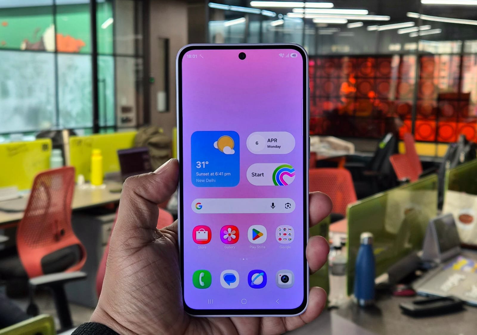 The Galaxy A37 adopts Samsung’s signature A-series design language with a few noticeable compromises that immediately signal its budget positioning. The front is dominated by a 6.7-inch Super AMOLED display that stretches edge-to-edge, though it retains a small, noticeable chin at the bottom. It’s not a deal-breaker, but it does make the phone feel a generation behind. In the same price bracket, Vivo’s V-series, OPPO’s Reno series, and Xiaomi’s Redmi Note lineup offer near-bezel-less designs with punch-hole cutouts that disappear more seamlessly. The A37’s chin is about 3–4mm thick, which adds a subtle “budget smartphone” vibe when held side-by-side with those rivals.