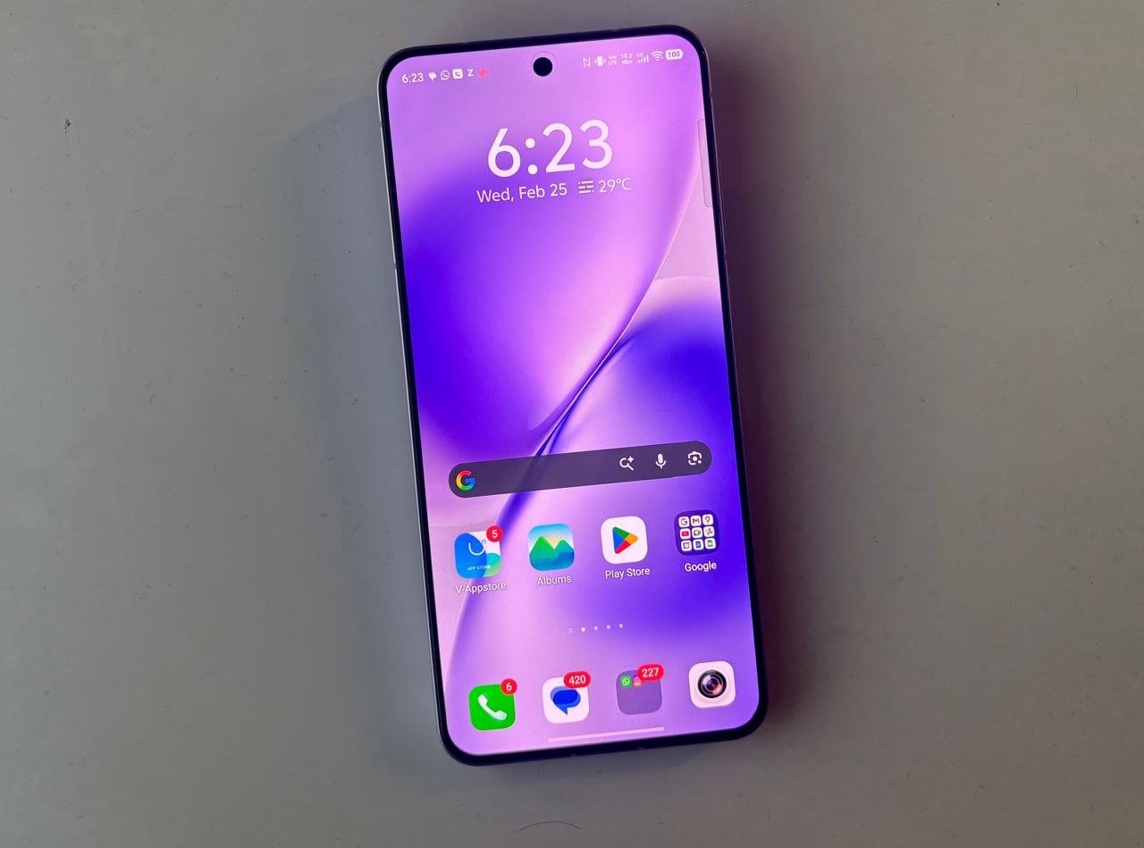 The device features a flat 6.67-inch display with slim bezels and a centered punch-hole cutout for the selfie camera, contributing to a modern, clean look. It uses a glass front and back with an aluminium alloy frame, offering a solid, premium in-hand feel. Available in two attractive colours – Stellar Black and Seaside Lilac. We received the lilac variant, which adds a fresh, eye-catching vibe, while black keeps things sleek and professional.