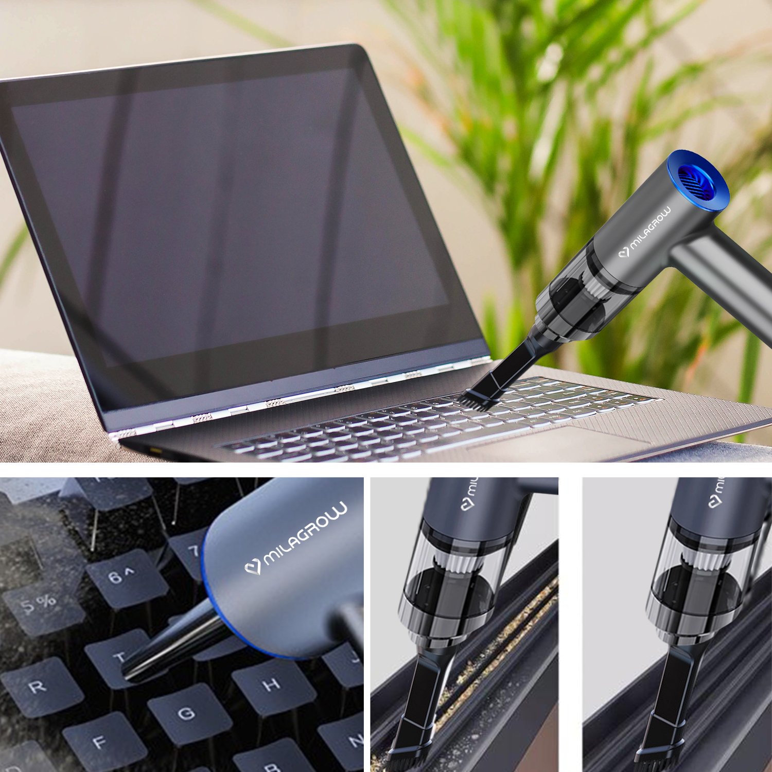 The Duster Blue features an impressive 5,000Pa suction power, comparable to full-sized vacuums but in a portable design. Its dual-mode operation allows for gentle cleaning of sensitive gadgets or powerful suction for deeper areas.