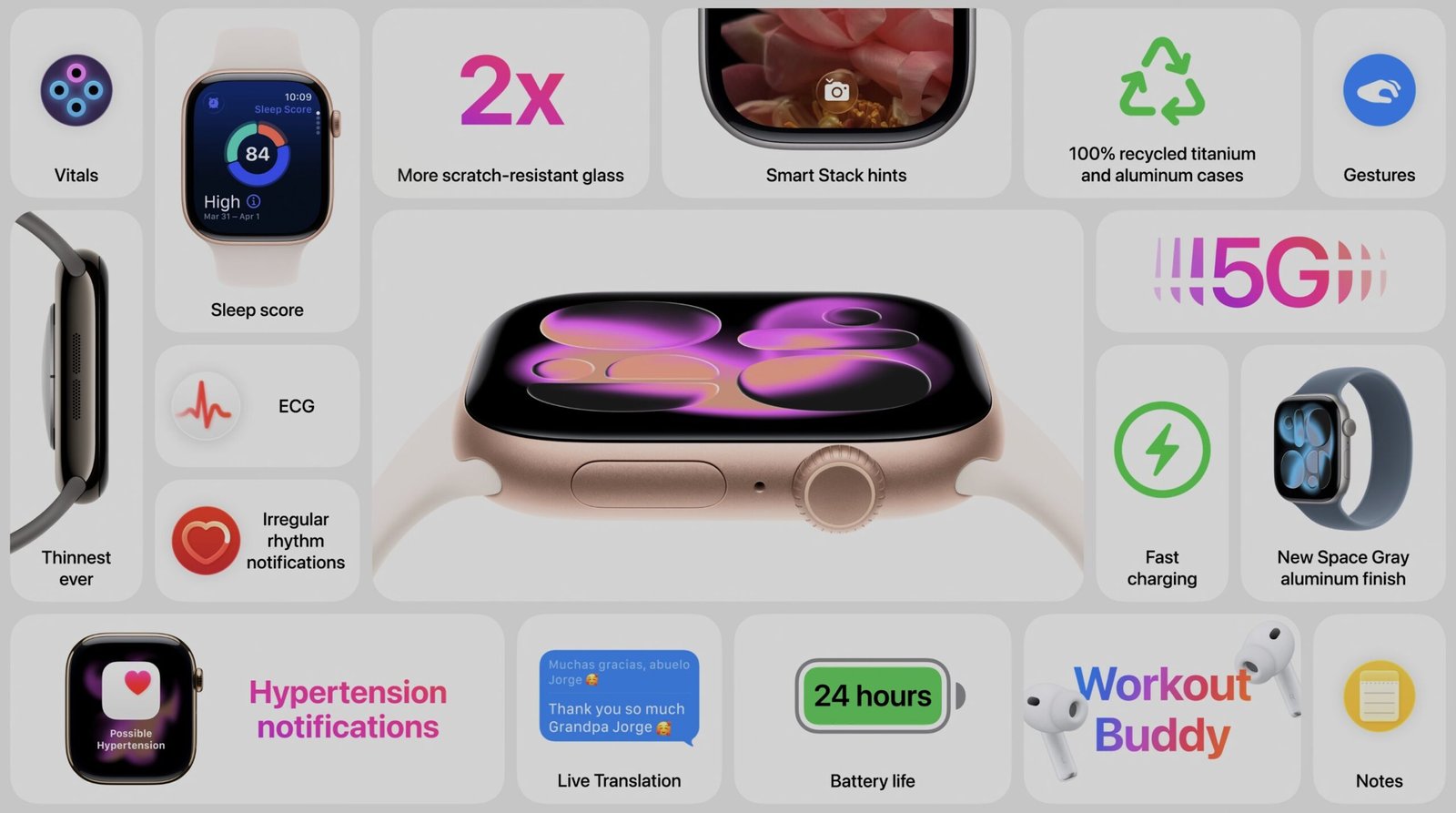 One of the notable new features is the blood pressure monitoring capability, which tracks hypertension over time rather than providing exact readings, alerting users to consult healthcare professionals if necessary. Running on watchOS 26, the Series 11 introduces the AI-powered Workout Buddy for personalized fitness coaching, along with a wrist-flick gesture for quick controls, such as muting calls.