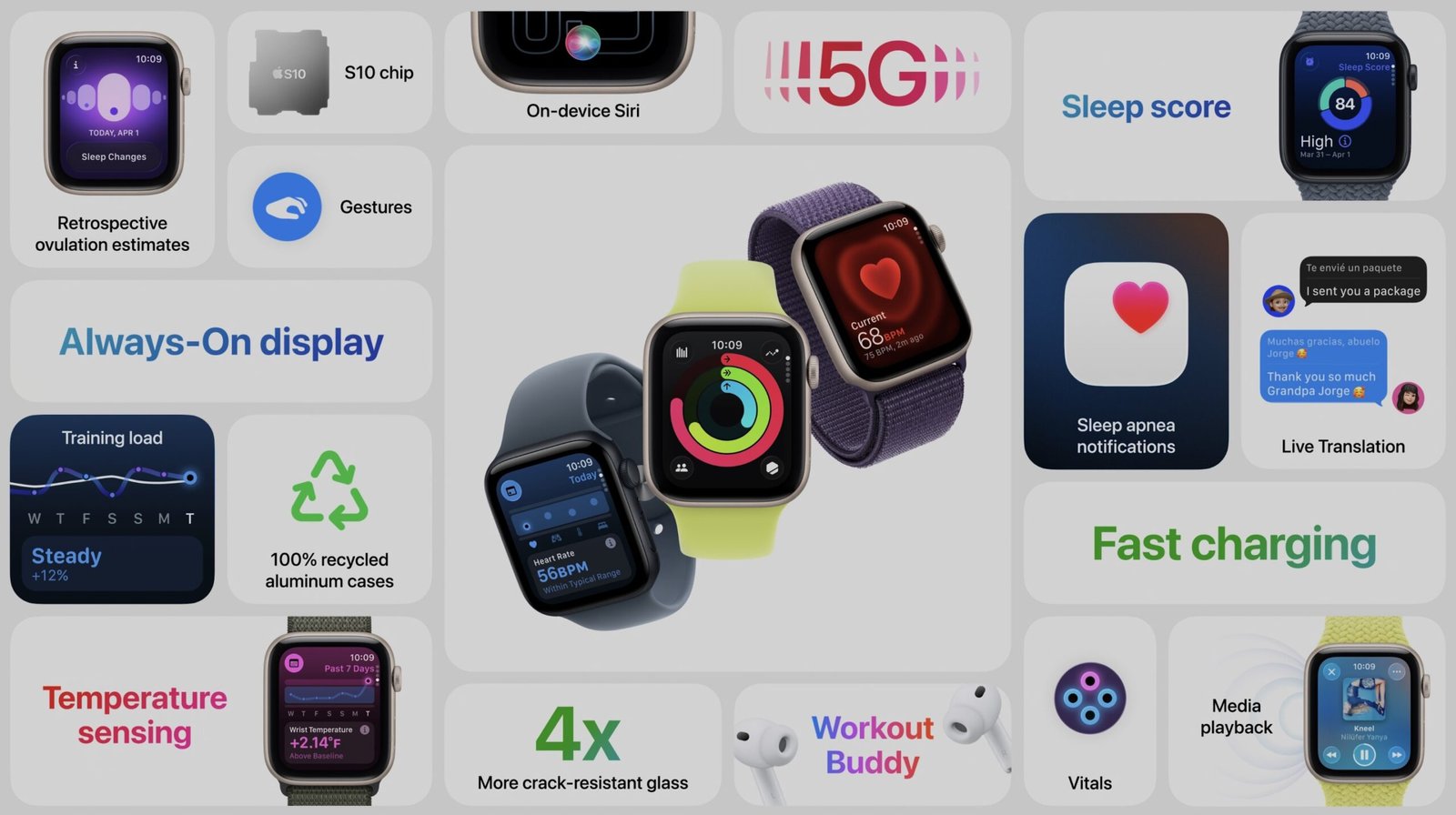 The significant upgrade? An Always-On display that keeps the time and notifications visible at a glance, powered by the new S10 chip for improved performance and efficiency. Fast charging is another advantage, providing 80% battery life in just 45 minutes, so you can get it back on your wrist sooner than ever. The real magic lies within the health features: sleep apnea detection and retrospective ovulation estimates are now included, along with a new Sleep Score that analyzes your rest quality overnight. Intuitive gestures, such as double-tapping for quick actions and flicking your wrist to scroll, add a touch of flair, while upgraded sensors offer ECG readings, blood oxygen monitoring, and irregular heart rhythm notifications.