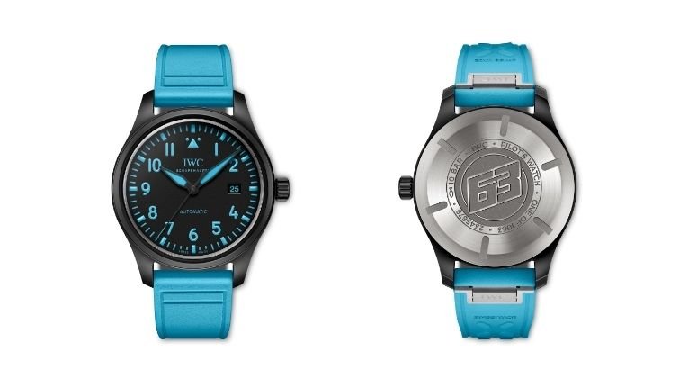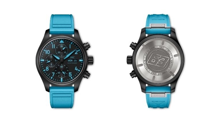 Visually, the watches stand out for their bold yet restrained aesthetic. Black dials are accented with printing and Super-LumiNova in Russell’s unmistakable signature blue, a colour long associated with his helmet design and personal racing brand. The same blue extends to the integrated rubber straps, creating a cohesive visual link between cockpit and wrist. Completing the personal touches are titanium case backs engraved with the number “63,” Russell’s racing number since his karting days.